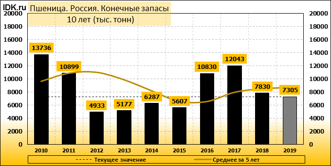 Конечные запасы: составят 7305 тысяч тонн. Оценка с последнего отчета снизилась на -2.12 процента.