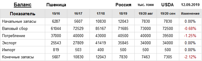 Смотрите также баланс по пшенице на 15.09.2019 по Украине