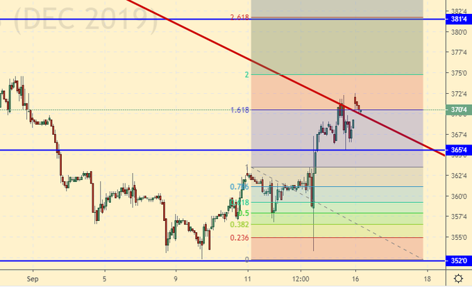 Золото: рынок стабилен. Атака дронов на завод в Саудовской Аравии на инвесторов пока впечатления не произвела. Могут быть последствия. Это правда. Американцы крайне чувствительны к ущербу, который может быть нанесен нефтяным промыслам. После того как Ирак вторгся в Кувейт 2 августа 1990 года, уже 8 августа Джордж Буш поставил Саддаму Хусейну ультиматум. Таким образом, ответ был дан практически незамедлительно. Проблема станет масштабной только в случае войны США – Иран, если будут ловить партизан в Иордании, то на это никто не будет обращать внимание. Переходим на декабрьский контракт биржи ММВБ.