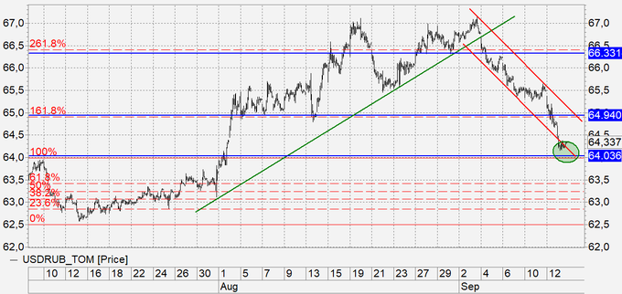 Рубль: рубль получит сегодня очередной допинг в виде роста цен на нефть, из-за атаки на нефтеперерабатывающий завод в Саудовской Аравии. Будем пытаться пройти ниже 64.00. Не факт, что это получится сделать с первого раза, но в случае эскалации напряженности на Ближнем Востоке Россия может получить дополнительный профит. Главное там самим не увязнуть.
