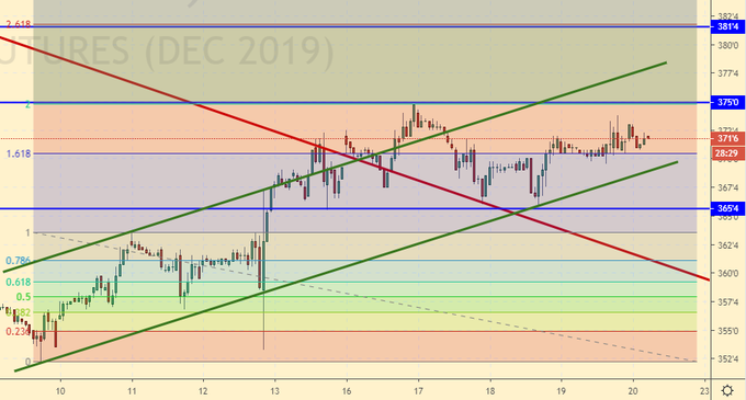 Кукуруза: должны сходить к 380.0. Дальнейшего роста может и не быть. Но до названной отметки подняться велит нам сам теханализ. Здесь можно добавить в покупку со стопом на 369.0. Если рынок уйдет ниже 365.0 так и не посетив 380.0, то тогда ситуация станет неопределенной.