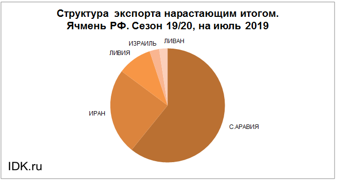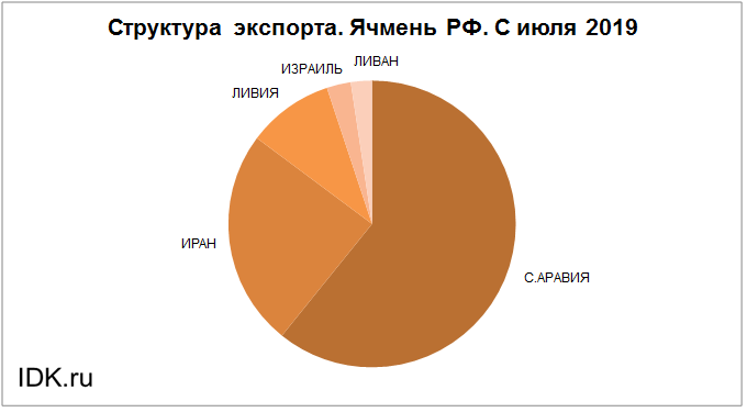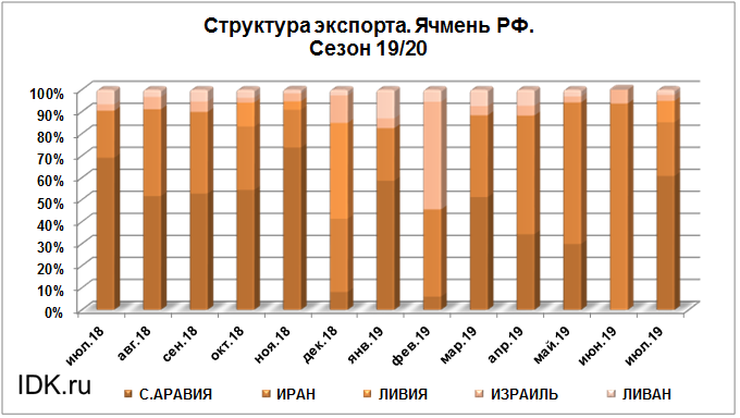 Структура экспорта ячменя из России с июля 2019