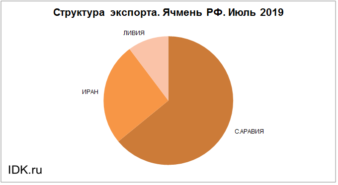 Структура экспорта ячменя из России за июль 2019