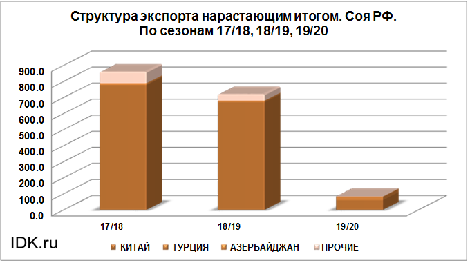 Структура экспорта сои из России нарастающим итогом по сезонам