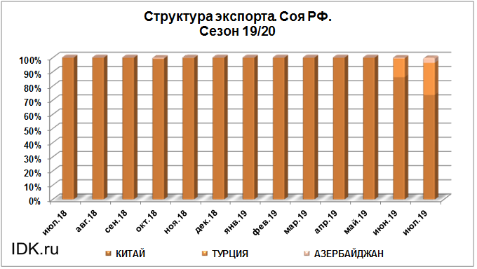 Объем поставок сои на экспорт за июль 2019 года в Азербайджан составил 3.01 тыс. тонн, что на 3.01 тыс. тонн больше объема поставок в данную страну в прошлом сезоне на тот же отчетный месяц.