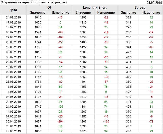 Отчет по открытому интересу. Пшеница, CME Group на 28.09.2019