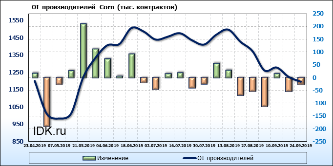 Открытый интерес производителей упал на 28 тыс. контрактов. Объем контрактов, направленных на хеджирование, составляет 1 197 122 штуки. Деньги производителей в течение прошлой недели уходили с рынка не видя привлекательности в текущей ситуации.