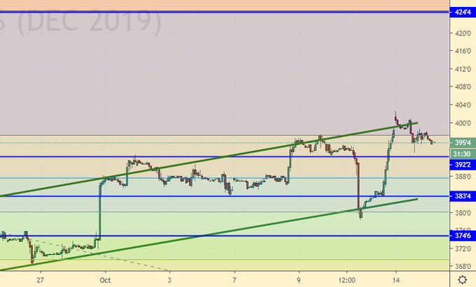 Кукуруза: после сильного рывка рынку нужно выписать дежурные «па», прежде чем движение вверх продолжится. Ход к 420.0 пока просматривается. Интересное начнется в том случае если мы «вдруг» упадем ниже 385.0 несмотря на все американо-китайские договоренности. Такой поворот будет грозить нам падением к 350.0, а возможно и ниже.