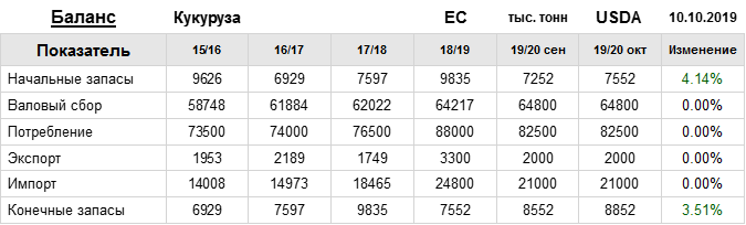 Смотрите также баланс по кукурузе на 15.10.2019 по России