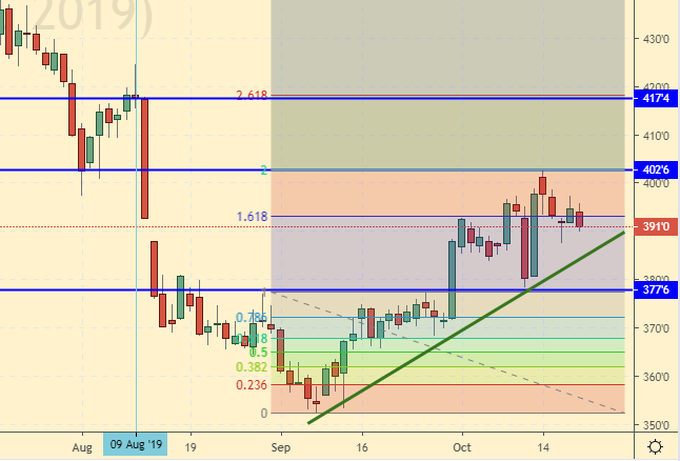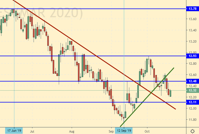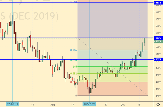 Пшеница неплохо отработала осеннее восстановление после минимумов первой декады сентября. Дальнейший рост вряд ли будет таким же бурным. Смущает сильное отставание кукурузы. Вероятно, что именно неопределенность в поставках американской кукурузы в Китай сдерживает данный рынок. Учитывая то, что по обеим культурам был собран хороший урожай, рассинхронизация в стоимости (рост спреда между пшеницей и кукурузой со 100.0 до 140.00 центов) вызывает вопросы именно к рынку пшеницы. Он воспринимается на данный момент как перекупленный.