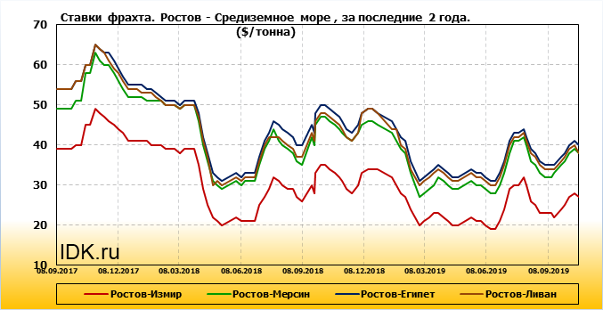 Ставки фрахта в Азовском регионе на 42-й неделе сохранили положительную динамику и выросли на $1-2 доллара. На базисе Ростов – Самсун давали $21-22 за тонну пшеницы. Приоритет в переговорах пока оставался на стороне Судовладельцев. Этому способствовали растущий спрос на зерно со стороны турецких импортеров и, как следствие, повышенный спрос на тоннаж.