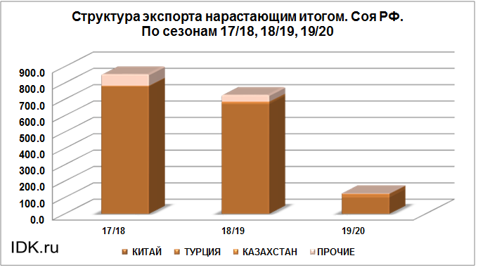 Структура экспорта сои из России нарастающим итогом по сезонам