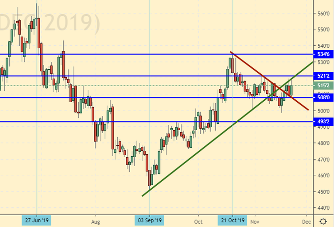 Рынок пшеницы продолжает находиться в равновесном состоянии. Из позитива для продавцов и фермеров можно отметить лишь то, что он так и не смогу упасть ниже 500.0 центов за бушель. В ближайшее время внешнеполитический фон будет определять судьбу цен. На рынке «покупателя» цены вряд ли будут расти. Если только все продавцы, именно фермеры, предпочтут подержать зерно до весны. Те, кому надо было продать, уже продали.