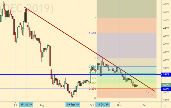Сценарий роста: рассматриваем ноябрьский фьючерс, дата экспирации 14 ноября. Рынок продолжает разряжаться. О покупках пока не думаем. Соя весьма энергично ходит время от времени. Кстати, на следующей неделе она может утащить за собой и рынок зерновых.