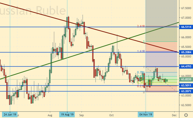 Рубль: стоим над 63.50. Российские долговые бумаги продолжают пользоваться спросом. Высокую процентную доходность с радостью забирают, ожидая очередной волны смягчения политики от ЦБ РФ. Мало кто сомневается в снижении ставки на 0.5% 13 декабря. Слабая инфляция помогает рублю. Так как и ставка в 6.0%, если её мы увидим, будет на 2.2% выше текущей инфляции. Ослабление рубля на моменте из-за ожидания снижения ставки возможно, но если учесть долгосрочный положительный эффект на экономику от низких ставок, то не стоит ожидать рубль выше 67.00 при нефти 60.00.