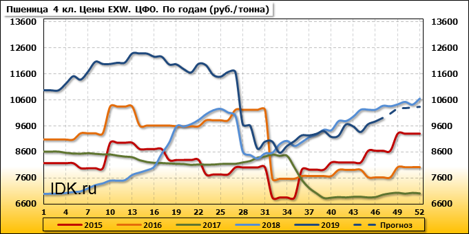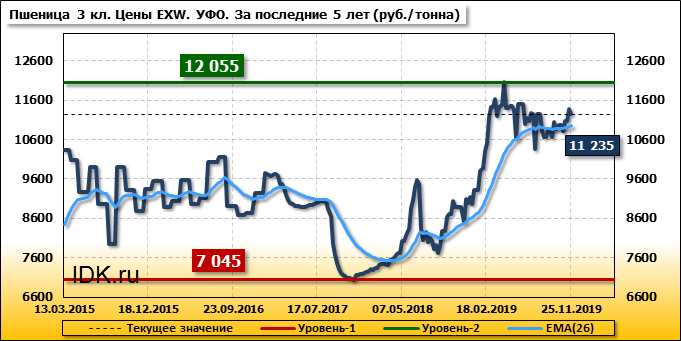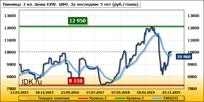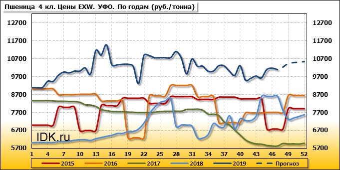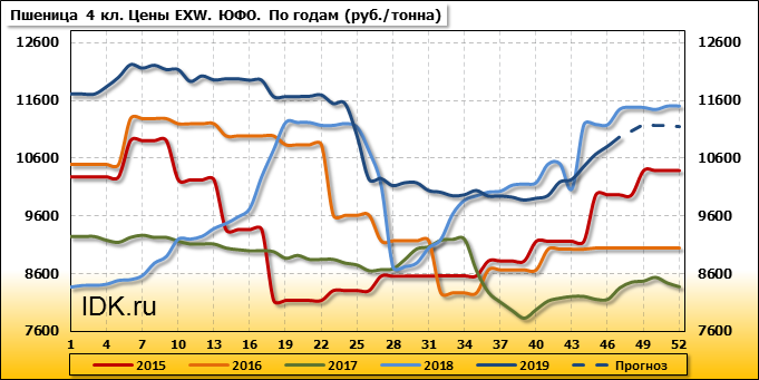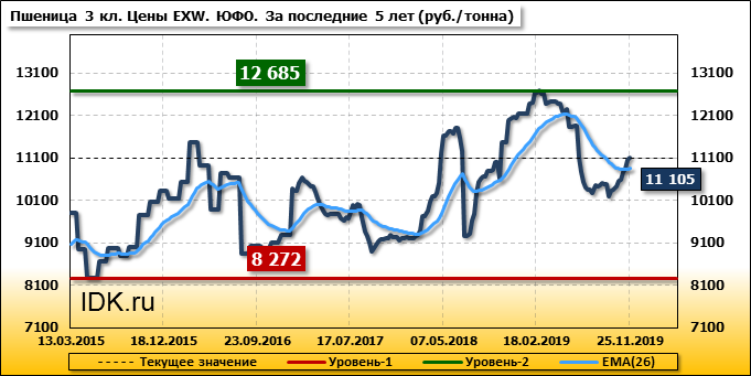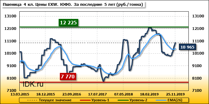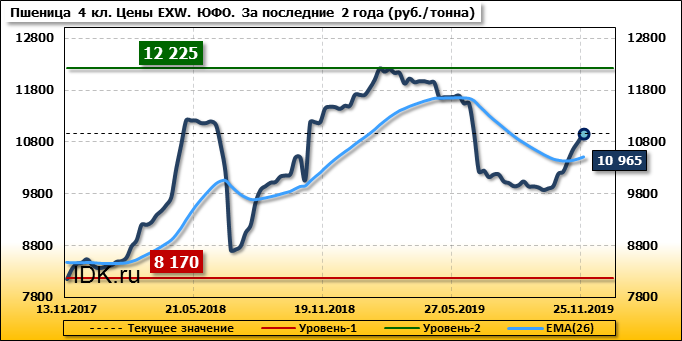 Цены на пшеницу 4-го класса поднялись на 160 руб./т. и на данный момент составляют 10965 рублей за тонну.