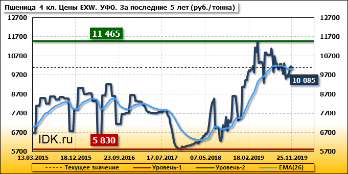 Цены на пшеницу 4-го класса снизились на 80 руб./т. и на данный момент составляют 10085 рублей за тонну.
