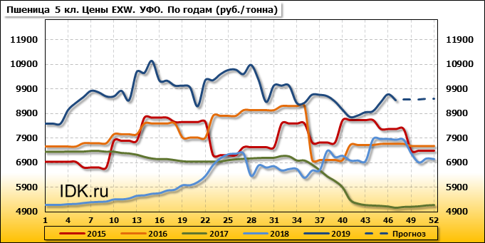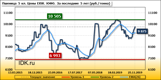 Цены на пшеницу 5-го класса повысились на 120 руб./т. и на данный момент составляют 9875 рублей за тонну.