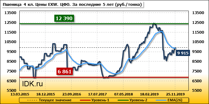 Цены на пшеницу 4-го класса поднялись на 135 руб./т. и на данный момент составляют 9915 рублей за тонну.