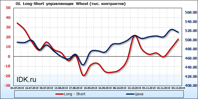 Смотрим на объемы открытого интереса управляющих. Вы должны учитывать, что это данные трехдневной давности (за вторник текущей недели), они же и самые последние из тех, что публикует биржа ICE.