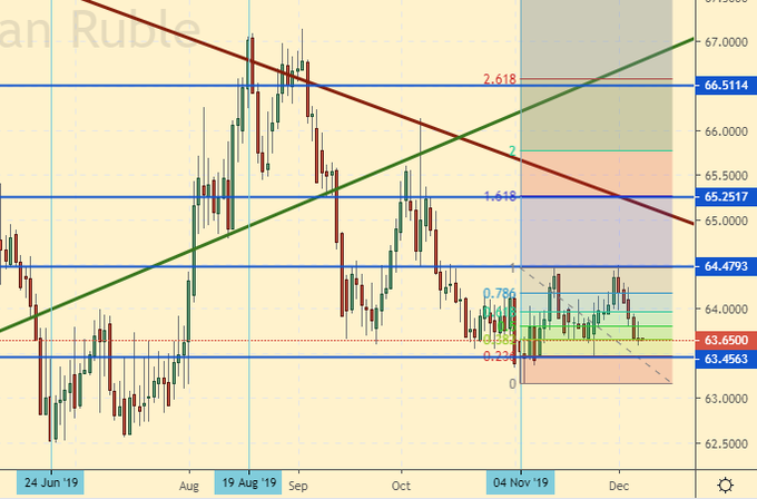 Сценарий падения: только в случае больших проблем у доллара мы можем уйти к 60.00. Однако, таковых на горизонте нет. Да, есть замедление темпов роста в США, но это замедление очень быстро скажется на всех странах. Ослабление будет повсеместным. Россия, по сути, не торгует с США, но торгует с Европой и Китаем, а эти экономики тесно связаны с американской. Поэтому, дела в Америке влияют и на нас. Падение заказов в 3-м квартале на поставки сырья из России тому подтверждение. От продажи пары пока воздержимся.
