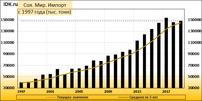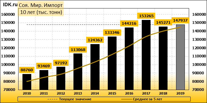 Импорт: составит 147937 тысяч тонн. Значение по прошествии месяца упало на -0.4 процента.