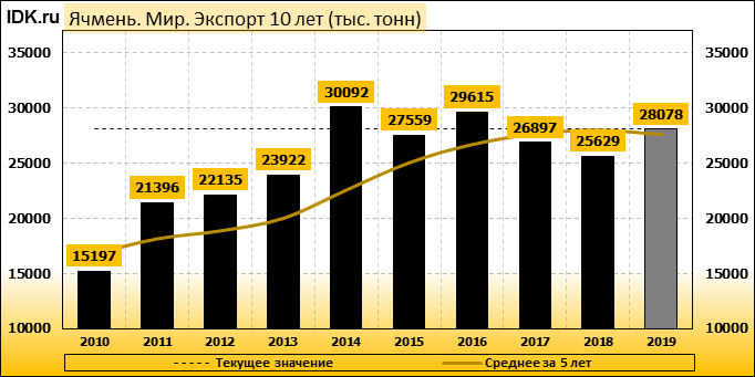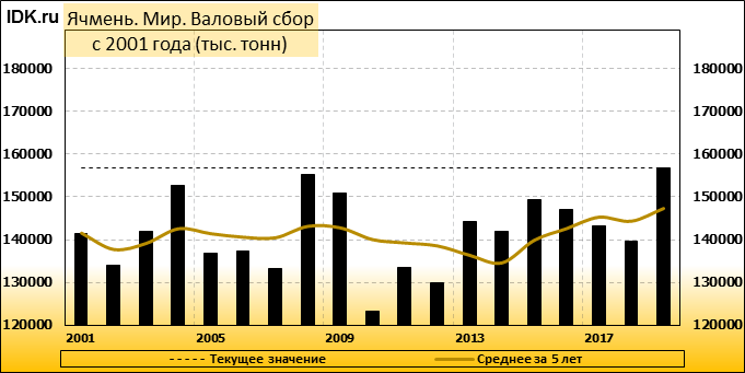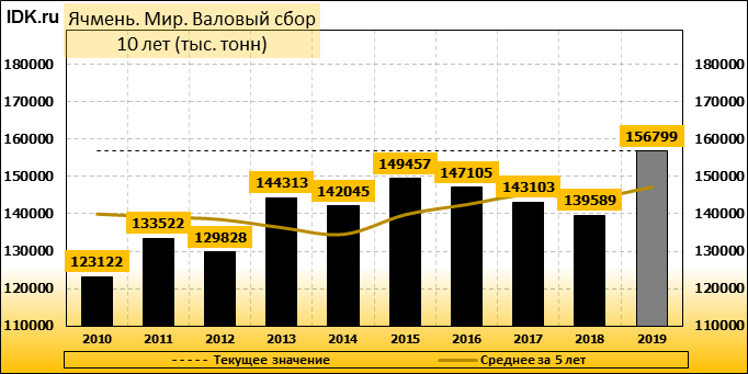 В своем декабрьском отчете WASDE Министерство Сельского Хозяйства США повысило прогноз мирового производства ячменя в 2019/20 маркетинговом году – до 156,80 млн. метрических тонн, со 155,84 млн., ожидавшихся в ноябре. Производство ячменя в 2018/19 году тем временем оценивается в 139,59 млн. тонн, что на 17,21 млн. тонн или 12,33 процента меньше, чем прогноз производства для 2019/20 года. Согласно отчету USDA, в этом месяце производство ячменя повышено для ЕС на 0,45 млн. тонн, для Канады — на 0,50 млн. тонн.