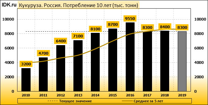 Потребление: показатель не изменился и составляет 8300 тысяч тонн.