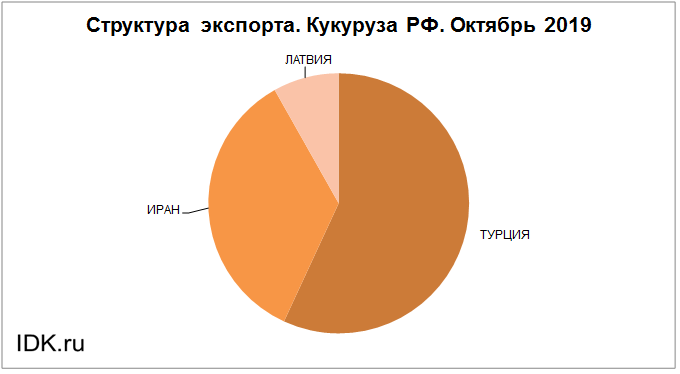 Структура экспорта кукурузы из России за октябрь 2019