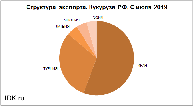Структура экспорта кукурузы из России с июля 2019