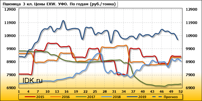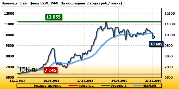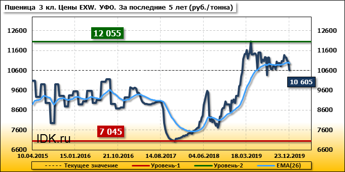 Внутренние цены на пшеницу 3 класса в Уральском федеральном округе упали на 435 руб./т. и на данный момент составляют 10605 рублей за тонну.