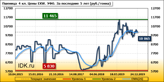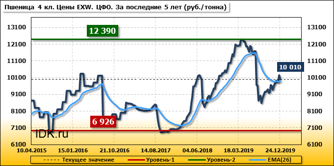 Цены на пшеницу 4-го класса снизились на 245 руб./т. и на данный момент составляют 10010 рублей за тонну.