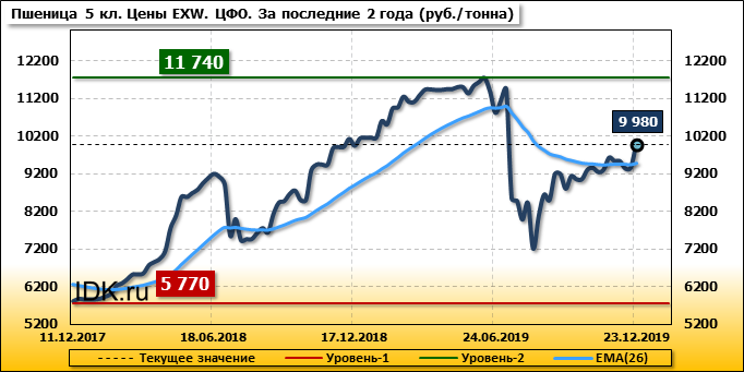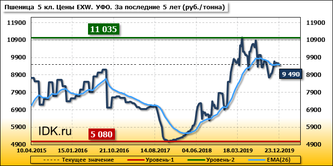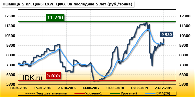 Цены на пшеницу 5-го класса повысились на 620 руб./т. и на данный момент составляют 9980 рублей за тонну.