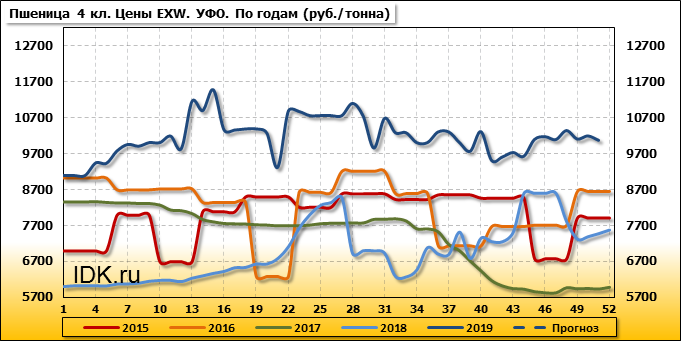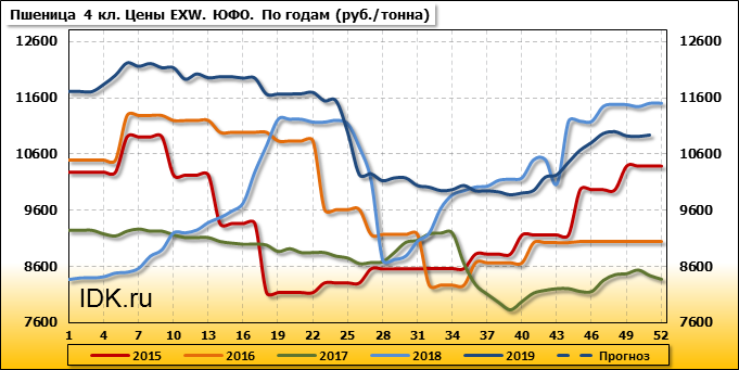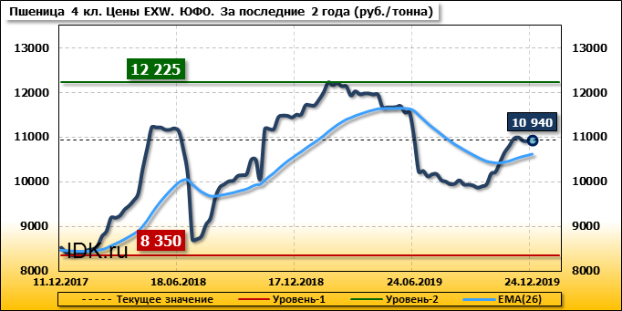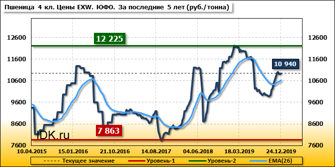 Цены на пшеницу 4-го класса поднялись на 25 руб./т. и на данный момент составляют 10940 рублей за тонну.