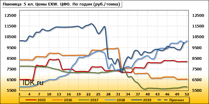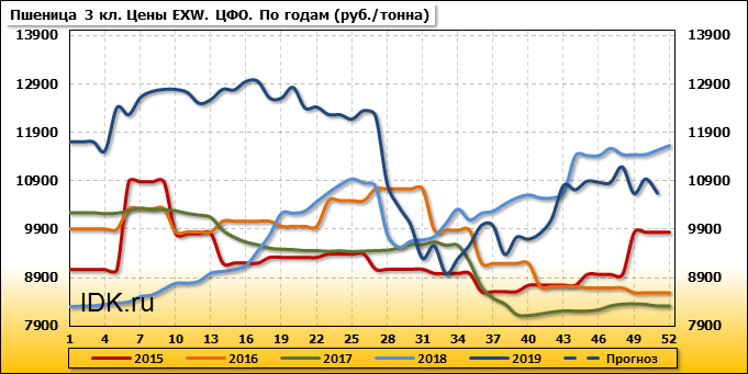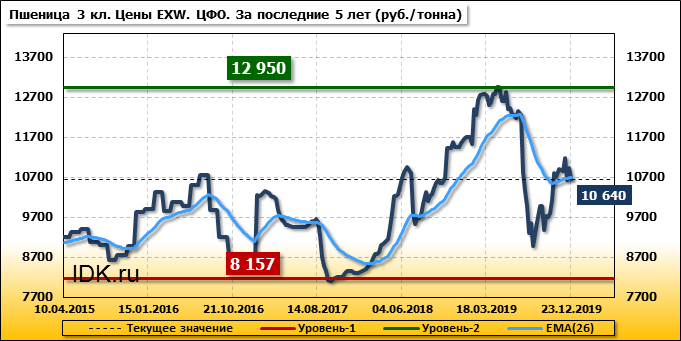 За прошедшую неделю в Центральном федеральном округе внутренние цены на пшеницу 3 класса упали на 295 руб./т. и на данный момент составляют 10640 рублей за тонну.