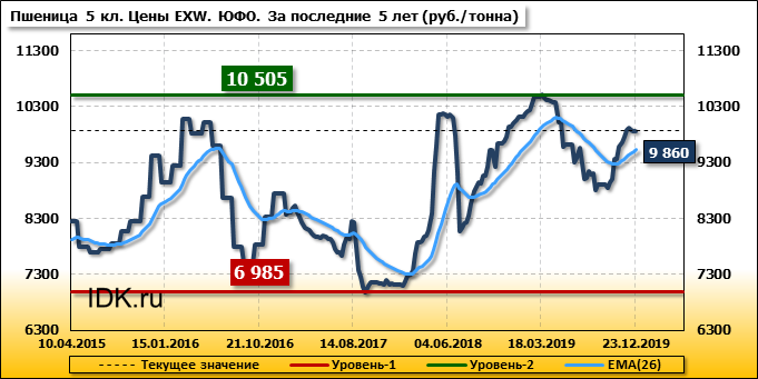 Цены на пшеницу 5-го класса повысились на 5 руб./т. и на данный момент составляют 9860 рублей за тонну.