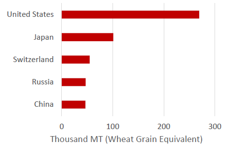 Низкий импорт твердой пшеницы в США в основном связан с необычно большими запасами на конец 2018/19 г. Большая часть этих запасов хранилась на Северных равнинах, где производится большая часть твердой пшеницы в США. Ввиду того, что почти весь импорт твердой пшеницы поступает из Канады, большие запасы в США снизили стимулы для торговли. Ожидается, что даже при высоких темпах экспорта и низком уровне импорта Соединенные Штаты останутся чистым импортером твердой пшеницы в 2019/20 году.