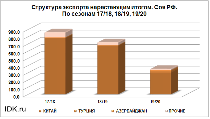 Структура экспорта сои из России нарастающим итогом по сезонам