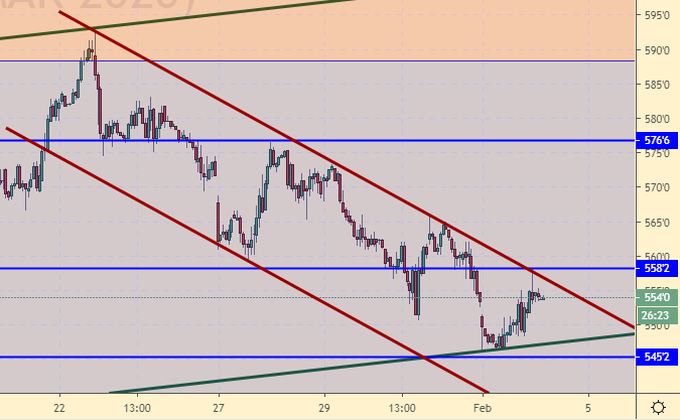 Пшеница: пытаемся отойти от 545.0 вверх, прорвать верхнюю границу падающего канала в районе 560.0, что создаст предпосылку движения к 600.0. Если это не удастся, то нас ждет пробой поддержки в районе 545.0, после чего мы двинемся к 500.0. Пока влияние вируса никак не оценивается рынком, зато есть оценки больших переходящих запасов исходя из площади сева в этом сезоне как пшеницы, так и кукурузы. Впрочем, так как Европа взяла четкий тренд на экологию, можно предположить, что производство и поставка генно-модифицированных семян (американские компании) очень скоро может оказаться под угрозой, что повлечет за собой снижение урожайности.