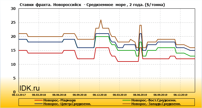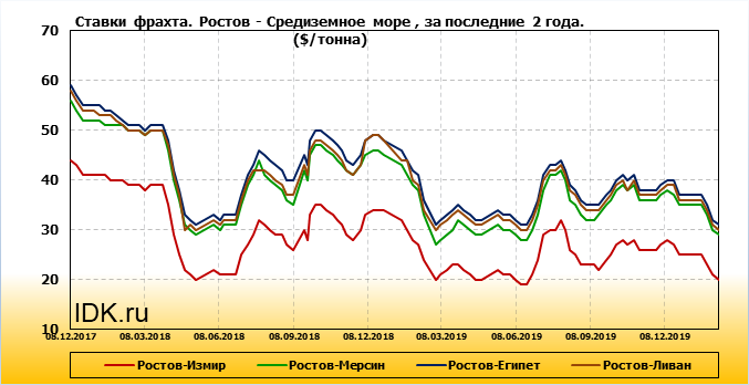 Азовский фрахтовый рынок на шестой неделе продолжил свое снижение. Падение ставок фрахта по-прежнему продиктовано увеличением количества спотовых теплоходов и отсутствием груза в регионе. Потребности Получателей закрыты до марта, поэтому в переговоры они вступают совсем неохотно и ведут себя довольно агрессивно, сбивая цену. Развитие ситуации будет сильно зависеть от внутренних цен на российские зерновые. В то время как на мировых площадках пшеница снижается на $2-5, внутри России она не только не падает в цене, но в некоторых регионах даже растет.