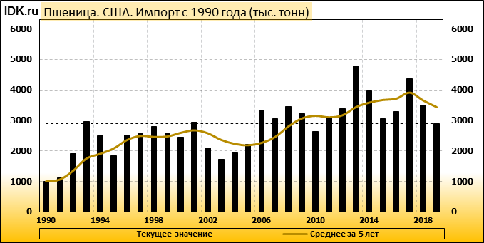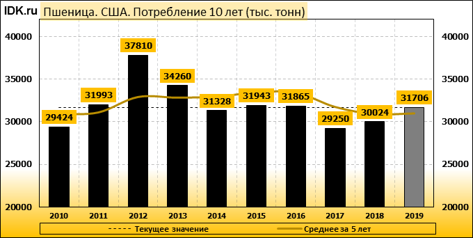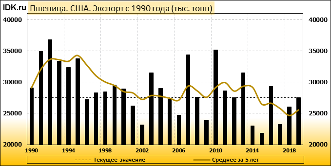 Согласно февральскому отчету Министерства Сельского Хозяйства США, прогноз производства пшеницы в США на 2019/20 год составляет 52,26 млн тонн. Это соответствует объему, который прогнозировался в прошлом месяце, и на 0,95 млн тонн больше, по сравнению с прошлым годом. Прогноз по экспорту пшеницы из США повышен на 500 тыс. тонн до 27,5 млн тонн, что больше прошлогоднего прогноза на 1,43 млн тонн.