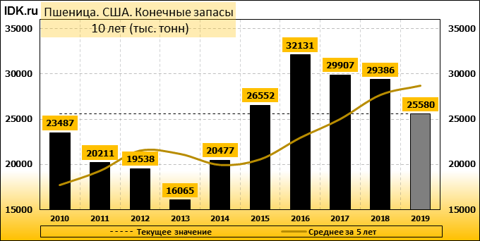 Конечные запасы: составят 25580 тысяч тонн. Оценка с последнего отчета снизилась на -2.59 процента.