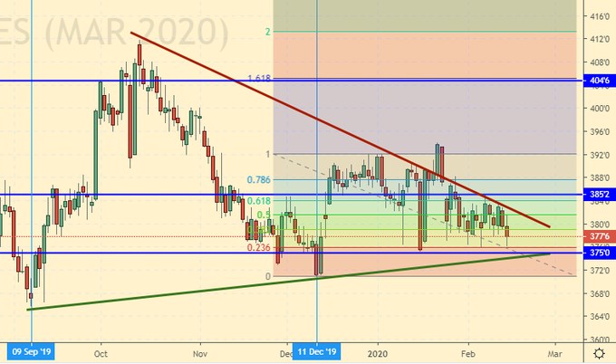 Сценарий роста: рассматриваем мартовский фьючерс, дата экспирации 13 марта. Покупать не будем пока сильно не свалимся (к 350.0; 330.0) или неожиданно не вырастем выше 390.0.