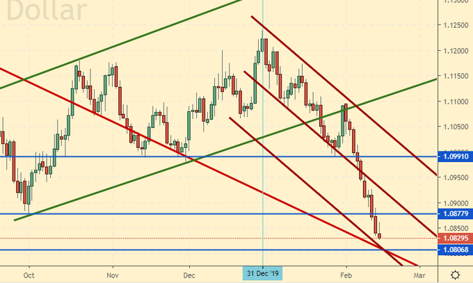 Сценарий роста: потребительская инфляция в США в январе выросла на 0,1% в годовом исчислении и достигла 2.3%. Это привело к продолжению усиления позиций доллара, так как если тенденция будет усиливаться, ФРС поднимет ставку. В Европе же ставки нулевые. Учитывая объем напечатанных денег спрос на бумаги ФРС в этом случае будет колоссальный. От района 1.0800 возможен лонг.