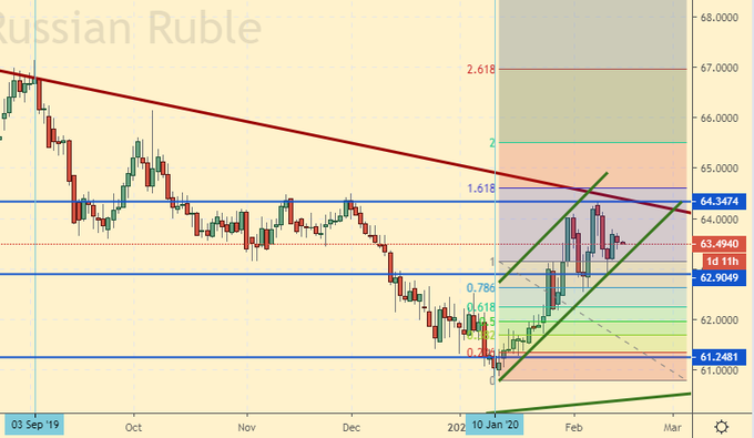 Сценарий роста: рассматриваем мартовский фьючерс, дата экспирации 13 марта. Пробили растущий канал вниз. Покупки прошлой недели ни к чему не привели. Откладываем идеи войти в лонг до лучших времен.