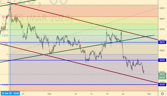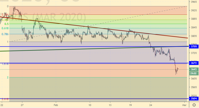 Пшеница: идем вниз, так как для того, чтобы идти наверх необходима причина. Так как дефицита зерна не предвидится, и многие компании будут испытывать логистические сложности с перевалкой и доставкой зерна из-за ситуации с вирусом, быкам пока надеяться не на что. Кроме того, фон ухудшается, рынки акций падают, компании начинают рапортовать о потерях из-за срыва в поставке комплектующих, всё это давит на сознание и народ, как минимум, предпочитает не входить в новые позиции, а находящиеся в новостном потоке просто шортят.
