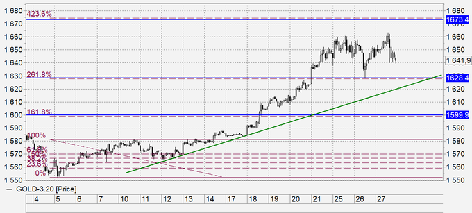 Продажа: искать возможности под 1650 с целями на 1603.