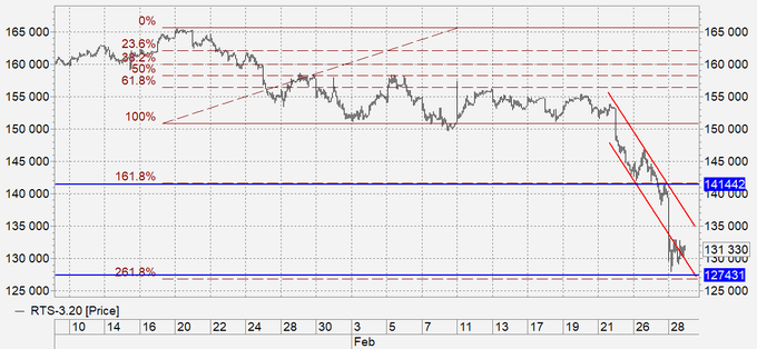 Индекс РТС: возможен отскок к 140000, если это действительно произойдет, то необходимо продавать. Отметим, что для восстановления в район 145000 потребуются какие-то позитивные сдвиги на внешнем рынке. Например, рост цен на газ и нефть. Очевидно, что в результате проблем на внешних рынках пострадают практически все сырьевые компании.