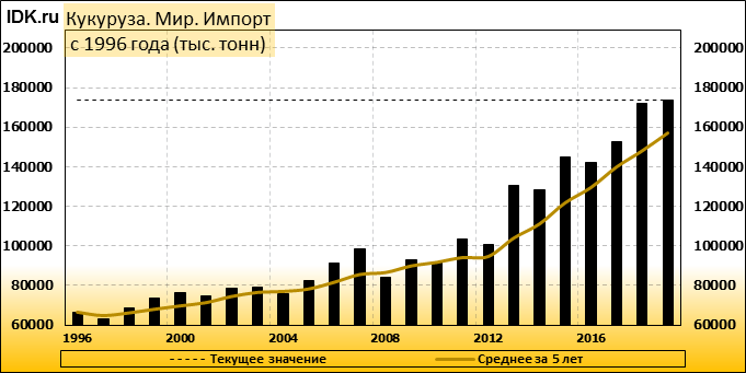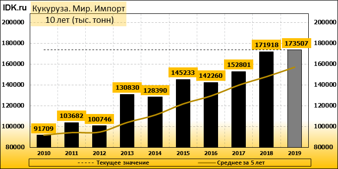 Импорт: составит 173507 тысяч тонн. Значение по прошествии месяца поднялось на 0.32 процента.