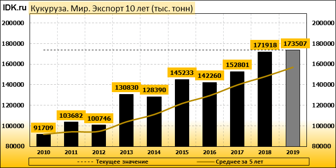 Экспорт: оценивается в 173507 тысяч тонн. За месяц показатель вырос на 0.32 процента.